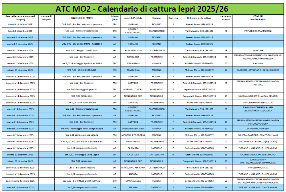 ATC MO2 - Calendario di cattura lepri 2025/26